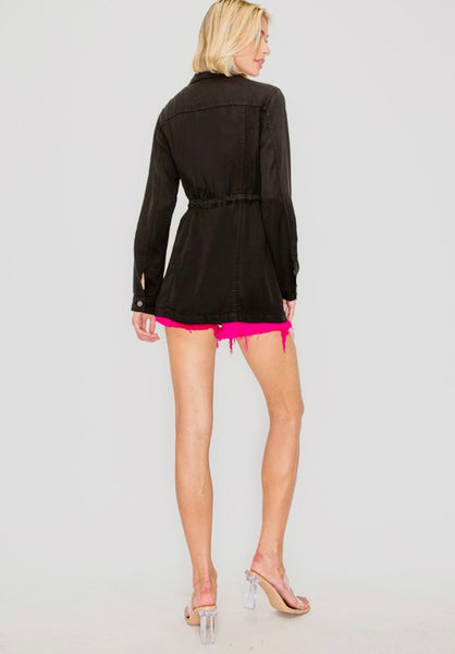 Take charge of your street style with the Shadow Scout Jacket. Designed with a cinched waist, bold utility pockets, and a sleek all-black finish, this jacket delivers instant edge with zero effort. Pair it with distressed denim or bold pops of color for a look that’s equal parts rebel and refined. It’s the jacket that turns everyday into a statement.